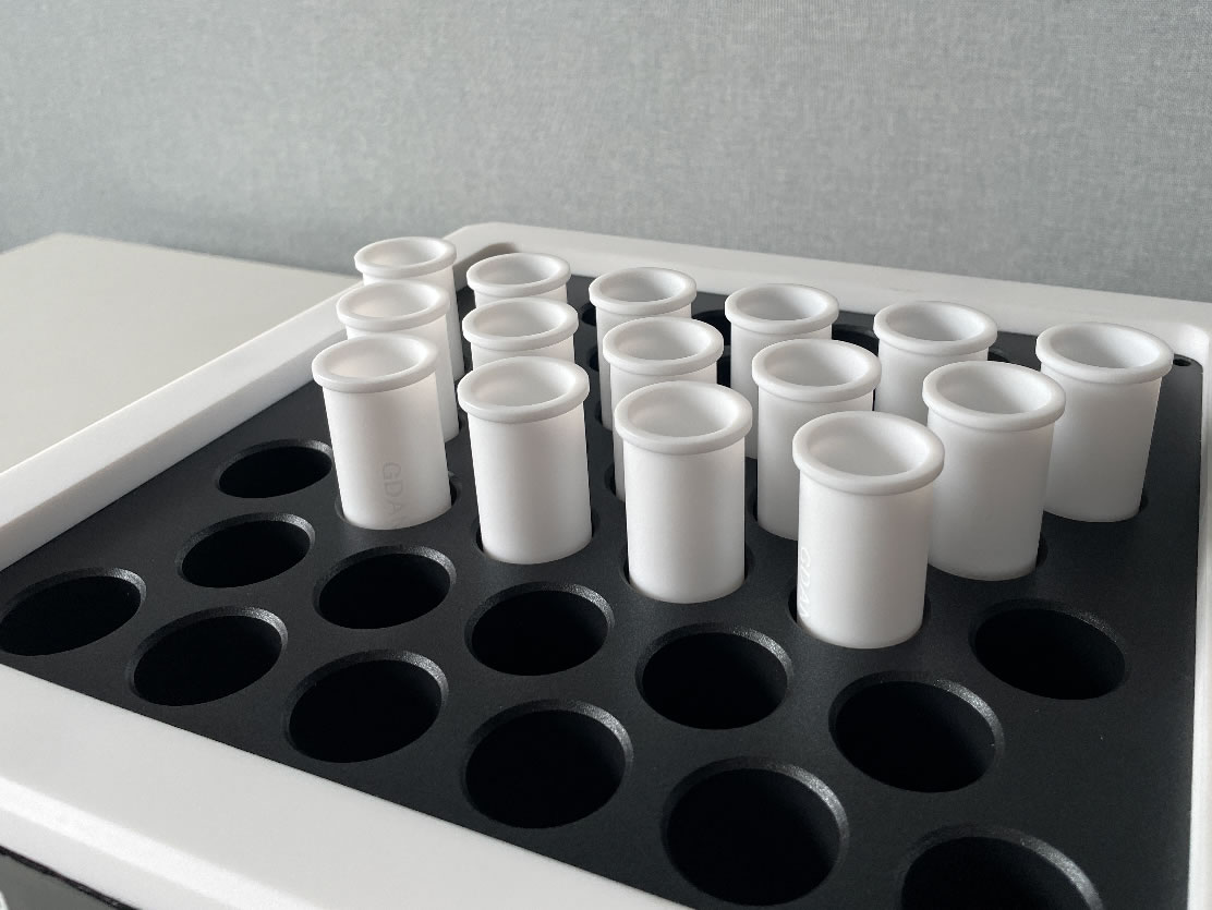 高純石墨體具有良好的導熱性,為所有樣品提供均勻的熱量,消除了加熱盲點。立體包裹式加熱,熱量損失更少,效率更高,彌補了電熱板加熱的不足。